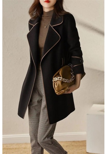 • Kaşe Kadın Şık Yaka Kaban Ve Kemer