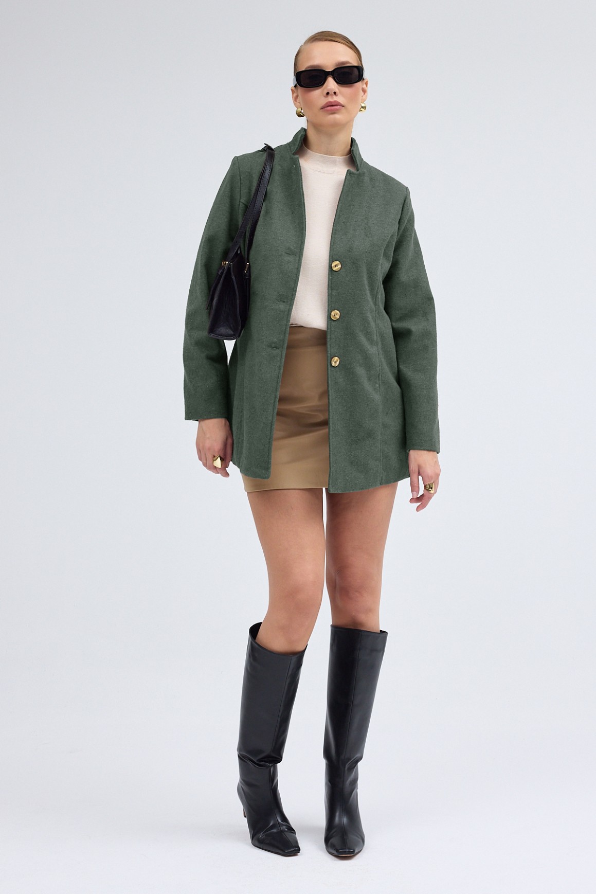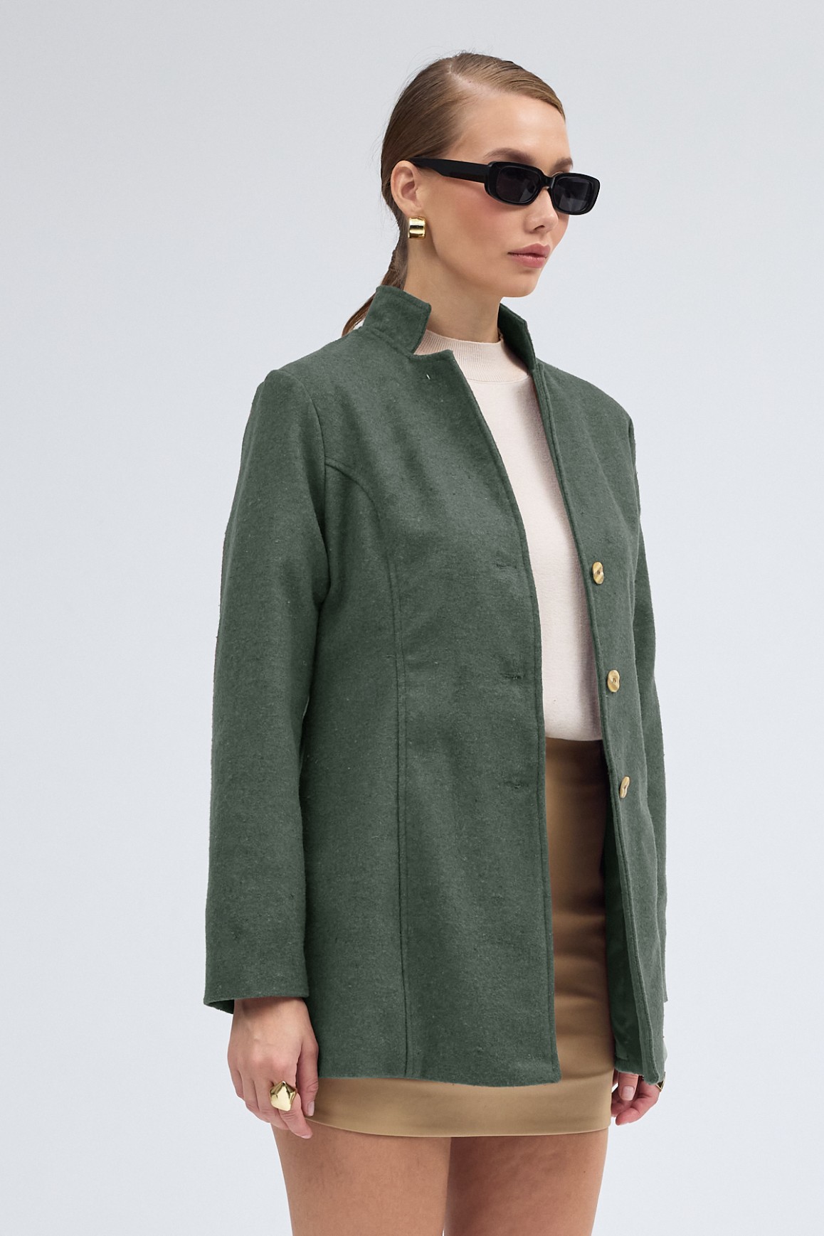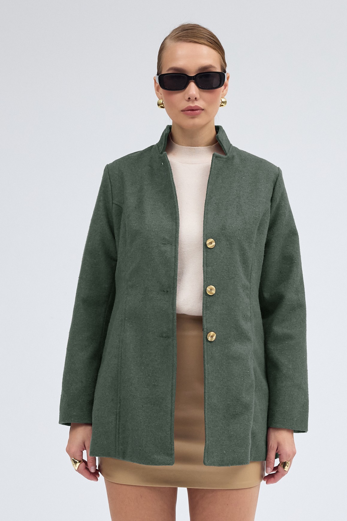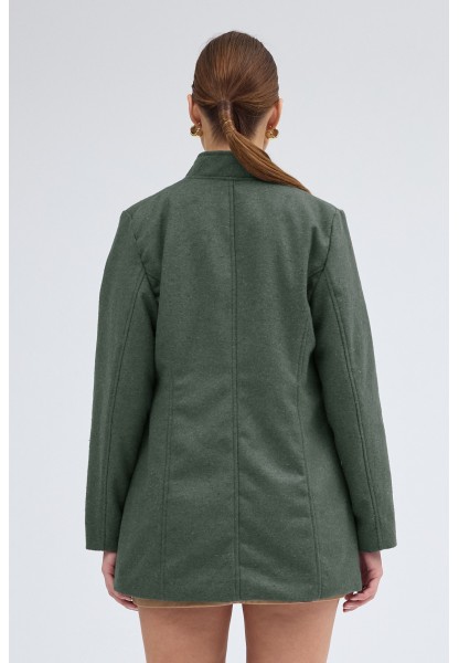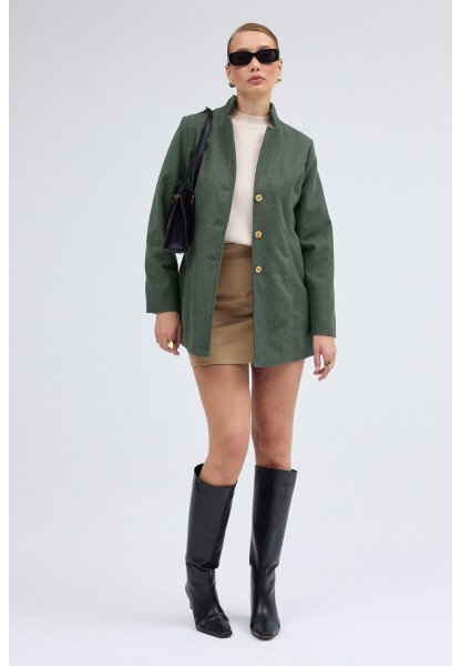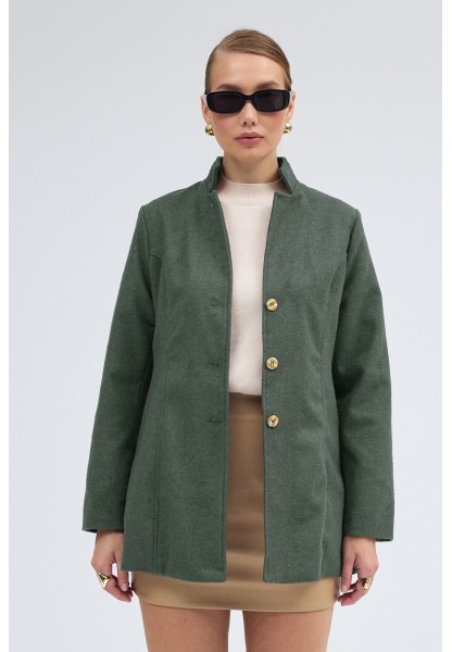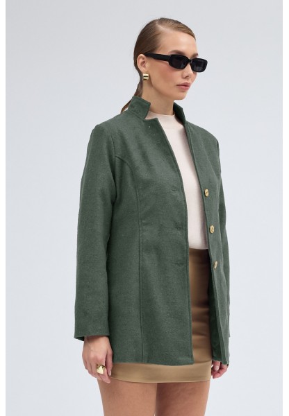 • Tasarım Yaka Kısa Boy Kaşe Haki Kaban