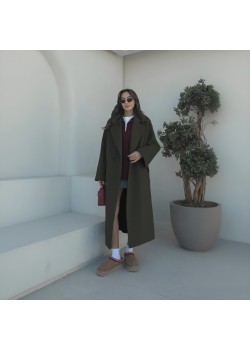 Kaşe Kadın Şık Yaka Kaban Ve Kemer